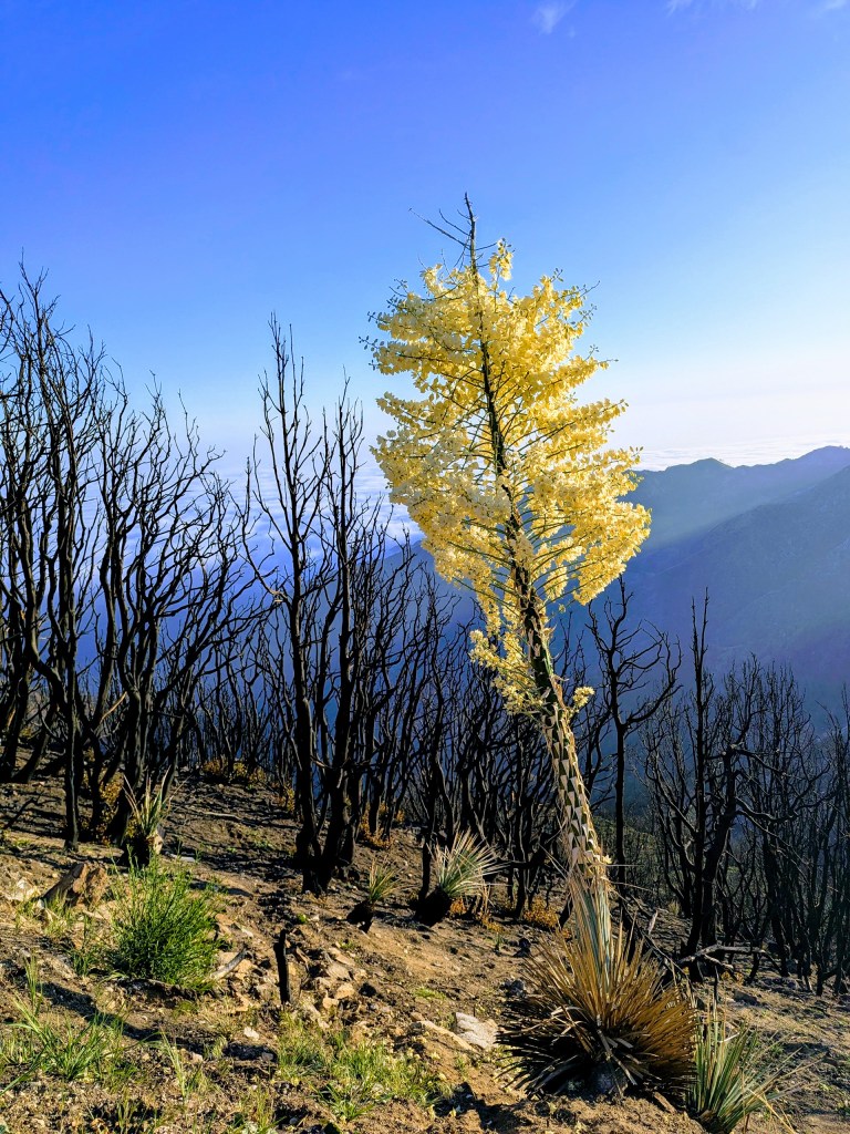 It’s May, and the mountains outside my office window are greening, timidly and freshly. The first grasses sprout from the ashes of the great fire half a year ago.