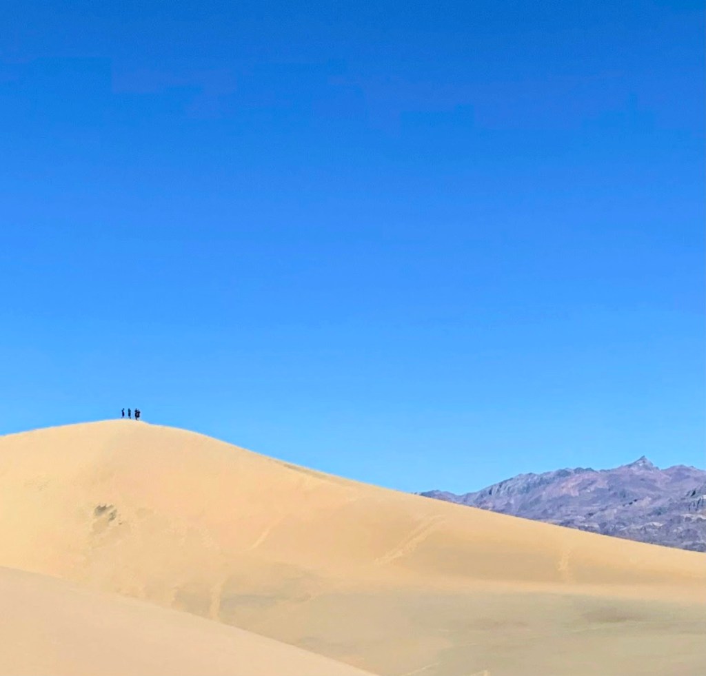 I sit cross-legged on the crest of a magnificent dune — the tallest one in the Mesquite Sand Dunes of Death Valley. Below me, a group of Icelandic undergrads chases a frisbee, their sandy hair blending with the background. I’m not old — barely entering my thirties — yet something in their unselfconscious youth casts a small shadow over my head. At dawn I raced two of them to the top of Dante’s View. I won, but instead of inhaling the sunrise, I coughed out my lungs.