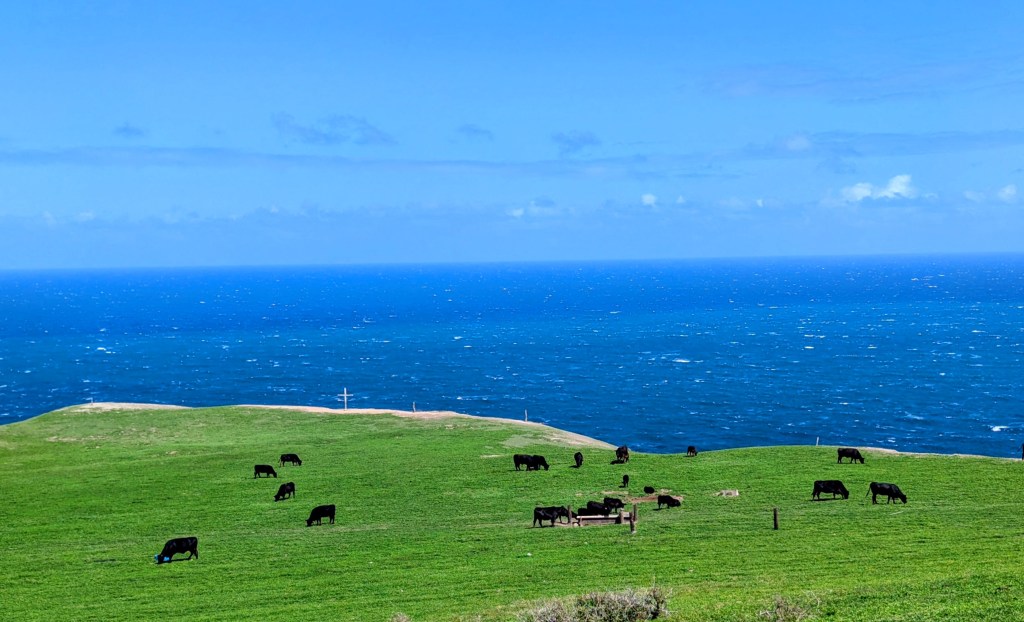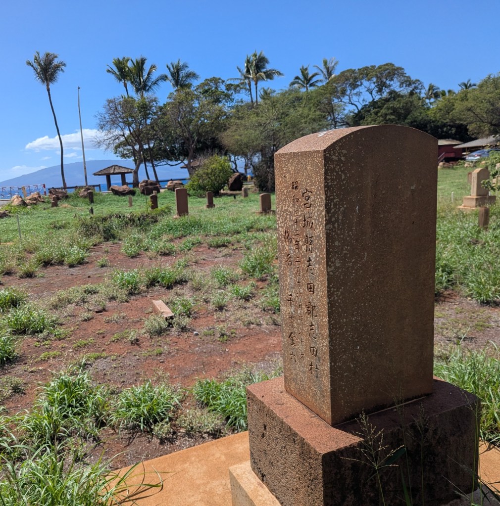 A herd of black cows grazes near the cliff’s edge. Another dotted pattern. “This one doesn’t belong here,” I think as I descend towards a small village sheltered in a cozy cove. In the village I pass an old cemetery, an open space dotted with gravestones. I stop and check the names, expecting Hawaiian ones, the ones that belong here. The stones are covered in kanji, so the graves are most likely Japanese. “Do they belong here?” I ask myself. I ask myself the same question constantly in Hawaii, and I do not have the answer.