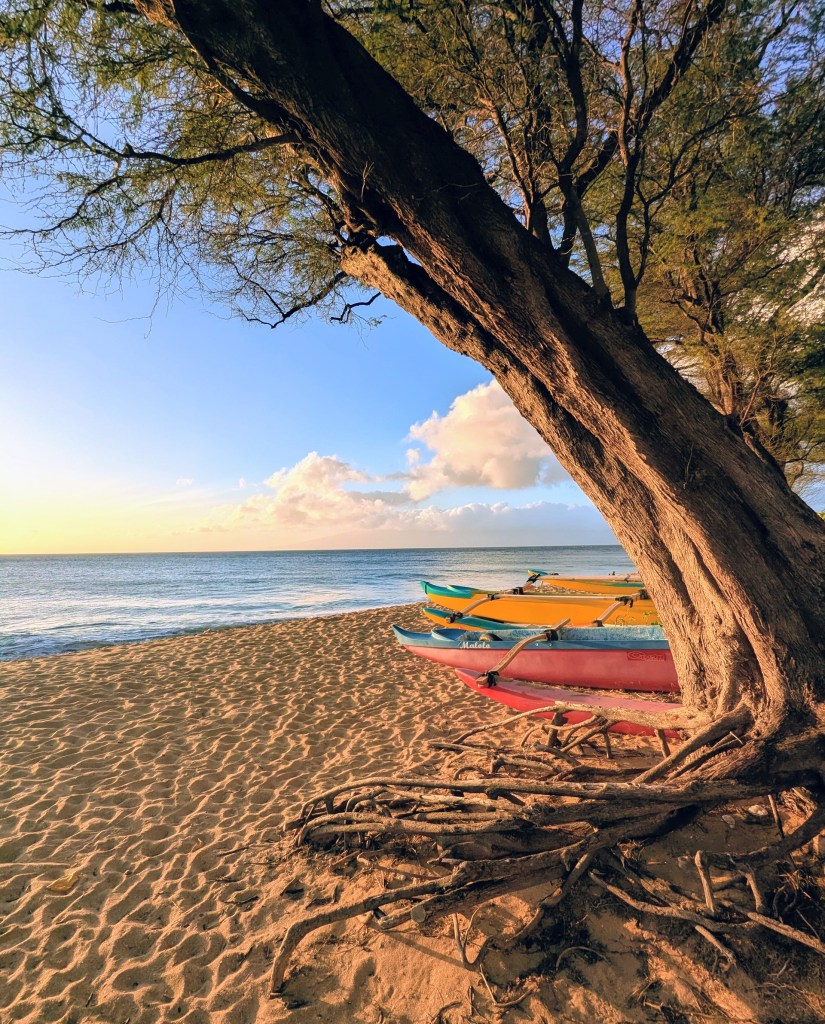 I pass crowds of tourists. Mostly white, mostly overweight or extremely fit. Both are signs of privilege. I stop by a small, empty beach and sit next to traditional canoes. I look at the setting sun, and for a moment I pray for a tsunami to come and wipe it all out. Maybe the few boats next to me could save the last few bits of honest tradition.