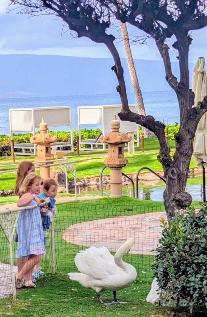 I stop at a Hyatt to refill water. There is a bunch of white swans and a bunch of even whiter girls watching them. They do not belong here. There are South African penguins in the hotel lobby. There are big cages announcing “Hyatt Parrot Hours 8am to 1pm”. There are traditional hula dancers next to the cages. Stripped of honest roots, the capitalist show seems no different to me than the caged parrots. Everything here seems wrong.